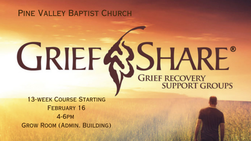 Our GriefShare support group will be meeting on Sundays from 4:00pm-6:00pm in the PVBC Office Building.